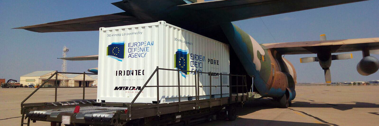 EDA’s ground-breaking project, “Additive Manufacturing Feasibility Study & Technology Demonstration”, aims to assess the areas where Additive Manufacturing (AM) (3D-printing) can have a positive impact on defence capabilities and to demonstrate its feasibility. The second work strand of this project is currently underway in Zaragoza as part of EDA’s airlift training course - EAATTC 17-3. In the morning of May 31st, the lab was loaded on-board a Spanish C-130 and completed a successful 30 minute flight. This test was pivotal to examining the feasibility of the facility to be deployed by air. After landing, the lab and its equipment was inspected and found to have encountered no issues from the airlift.